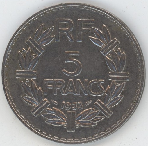 / France 5 Francs 1933 Lavrillier (ss+)