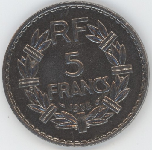 France 5 Francs 1938 Lavrillier (ss-vz)