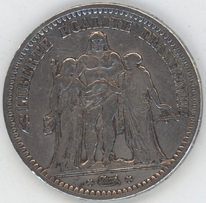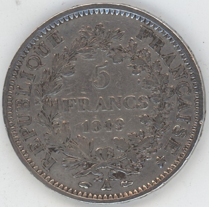 France 5 Francs Hercule 1849 A (ss) en argent 0.900 (24.9gr) KM# 756.1