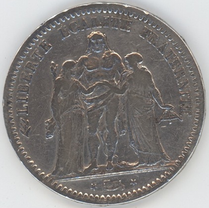 France 5 Francs Hercule 1872 A (s-ss) en argent 0.900 (25gr) KM# 820.1