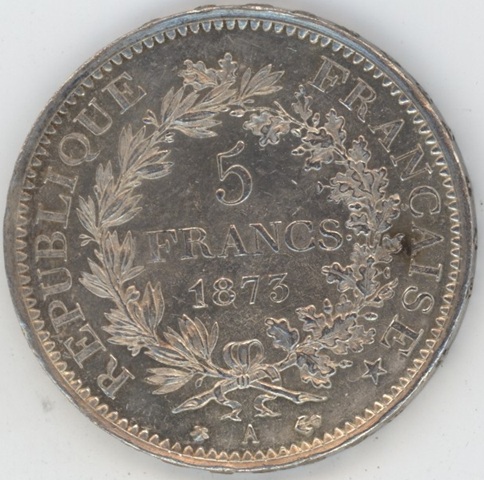 France 5 Francs Hercule 1873 A (vz) en argent 0.900 (25gr) KM# 820.1