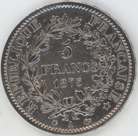 France 5 Francs Hercule 1875 A (ss) en argent 0.900 (25gr) KM# 820.1