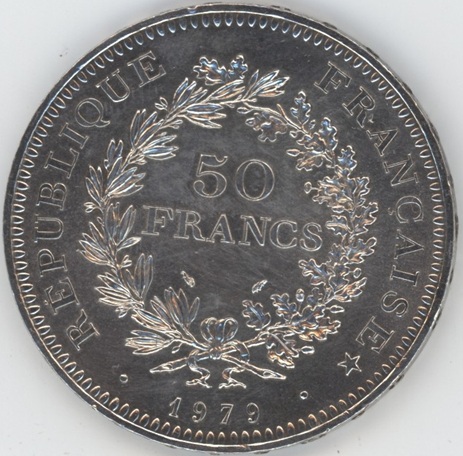 France 50 Francs Hercule 1979 (ss-vz) en argent 0.900 (30gr) KM# 941.1