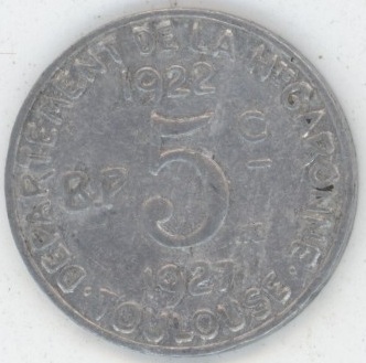 France Département de la Haute-Garonne Toulouse 5 Centimes 1922 (ss) Aluminium
