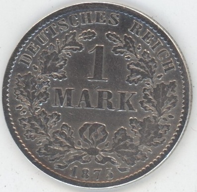 Germany 1 Mark 1875 D Wilhelm I (s) en argent 0.900 (5.5gr) KM# 7
