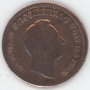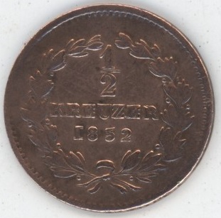 Germany Baden 1/2 Kreuzer 1852 Léopold Ier (s) Copper KM# 213