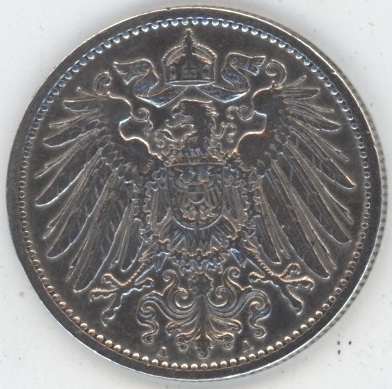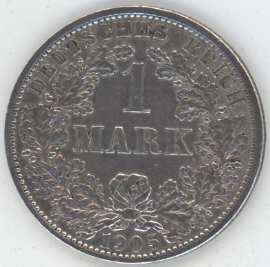 Germany Empire 1 Mark 1905 A Wilhelm II (ss-vz) en argent 0.900 (5.55gr) KM# 14