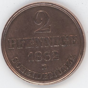 Germany Hannover 2 Pfennig 1862 B Georg V (ss+) Copper KM# 234