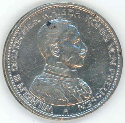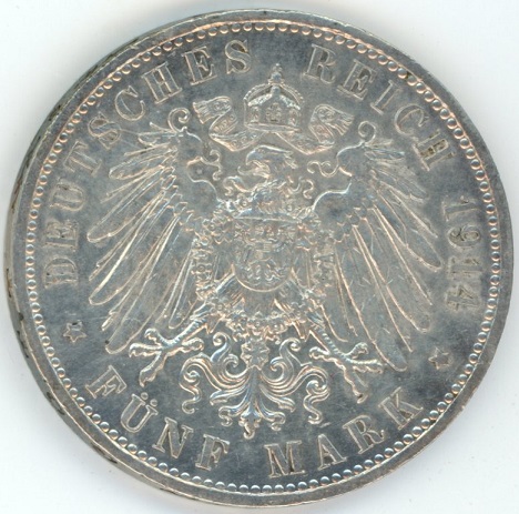 Germany Prussia 5 Mark 1914 A Wilhelm II (ss) en argent 0.900 (27.77gr) KM# 536