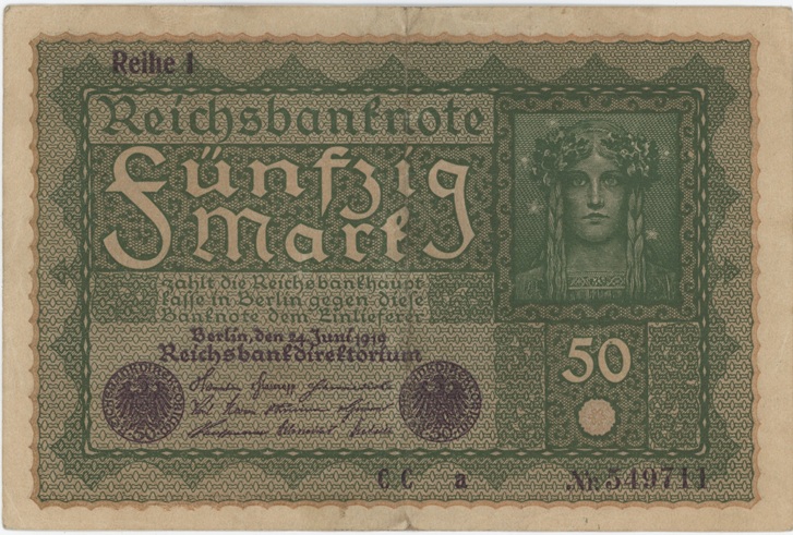 Germany Reichsbanknote 50 Mark 1919 utilisé