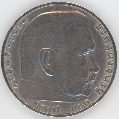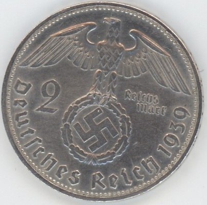 Germany Troisième Reich 2 Mark 1939 D Paul von Hindenburg (ss+) en argent 0.625 (8gr) KM# 93