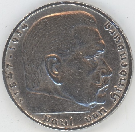 Germany Troisième Reich 5 Reichsmark 1936 D Paul von Hindenburg (ss) en argent 0.900 (13.88gr) KM# 83