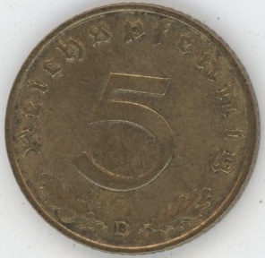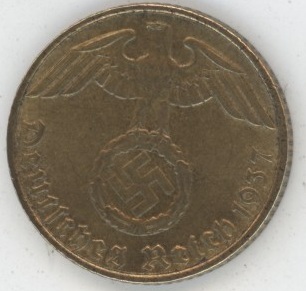 Germany Troisième Reich 5 Reichspfennig 1937 D (vz) Bronze-aluminium KM# 91