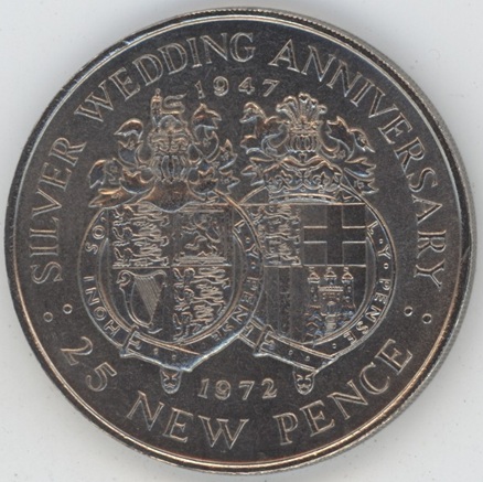 Gibraltar 25 New Pence 1972 Anniversaire de mariage (vz-unz) Copper-Nickel KM# 6