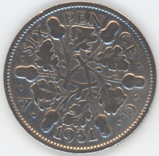 Grande-Bretagne 6 Pence 1931 George V (s-ss) en argent 0.500 (2.83gr) KM# 832