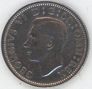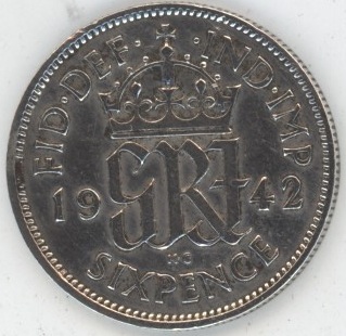 Grande-Bretagne 6 Pence 1942 George VI (ss) en argent 0.500 (2.83gr) KM# 852