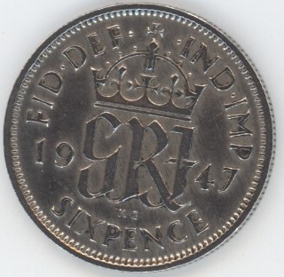 Grande-Bretagne 6 Pence 1947 George VI (ss) cupronickel KM# 862