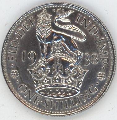 Grande-Bretagne Shilling 1938 George VI “English crest” (vz) en argent 0.500 (5.66gr) KM# 853