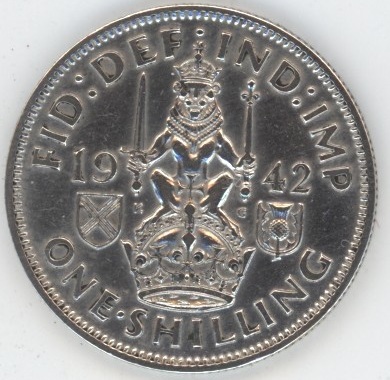 Grande-Bretagne Shilling 1942 George VI “Scottish crest” (ss) en argent 0.500 (5.66gr) KM# 854