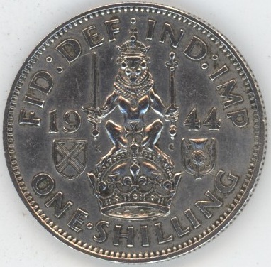 Grande-Bretagne Shilling 1944 George VI “Scottish crest” (ss) en argent 0.500 (5.66gr) KM# 854