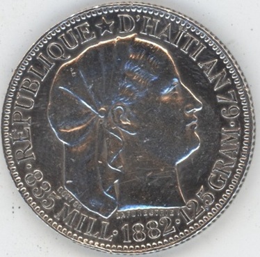 Haïti 50 Centimes 1882 (ss+) en argent 0.835 (12.5gr) KM# 47