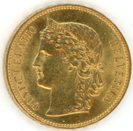 Helvetia 20 Francs OR 1896 (vz) en or 0.900 (6.45gr)