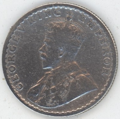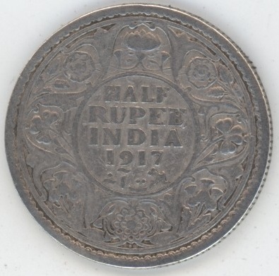Inde Britannique 1/ Roupie 1917 George V (s-ss) en argent 0.917 (5.83gr) KM# 522