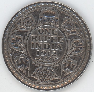 Inde Britannique 1 Rupee 1912 George V (s-ss) en argent 0.917 (11.66gr) KM# 524