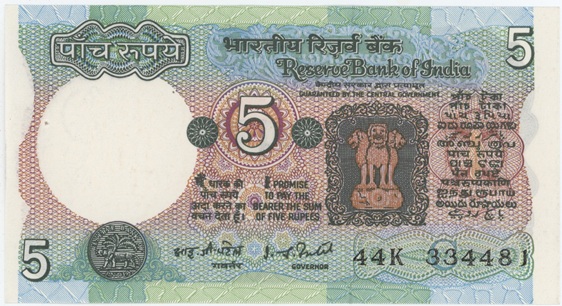 India 5 Rupees ND (1970-03) Neuf avec petits trous