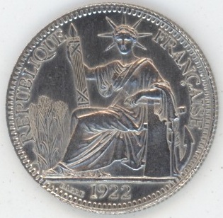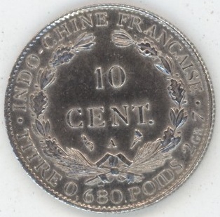 Indochine 10 Centimes 1922 A (vz) en argent 0.680 (2.7gr) KM# 16.1