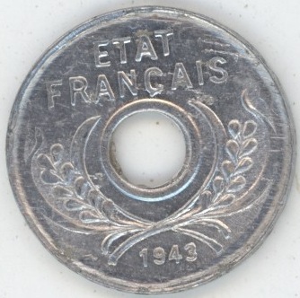 Indochine 5 Centimes 1943 État Français (ss+) Aluminium KM# 27