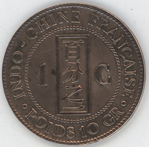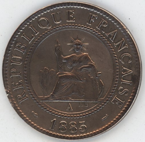 Indochine Française 1 Cent 1885 A (ss+) petit coup sur la tranche Bronze KM# 1
