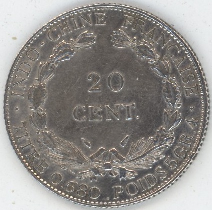 Indochine Française 20 Cent. 1937 (ss+) en argent 0.680 (5.4gr) KM# 17.2