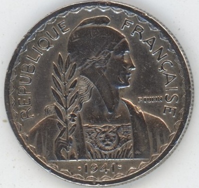 Indochine Française 20 Centimes 1941 S (ss+) cupronickel KM# 23a