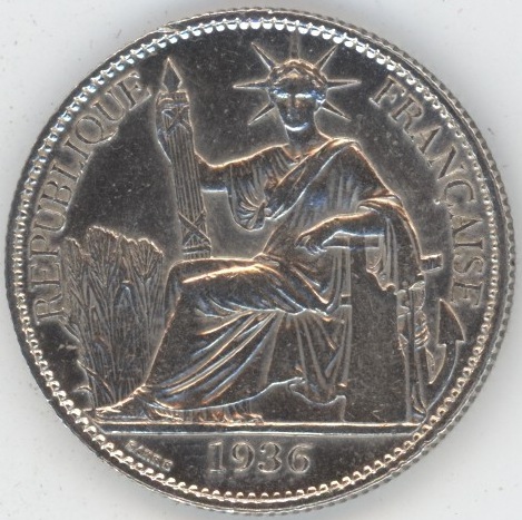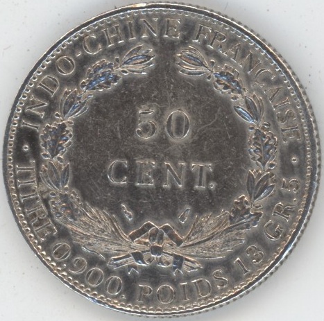 Indochine Française 50 Cent. 1936 (ss+) en argent 0.900 (13.5gr) KM# 4a.2