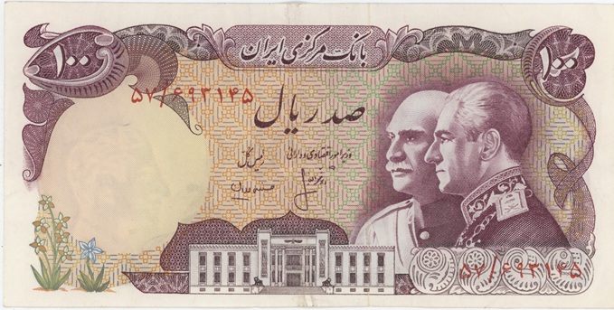 Iran 100 Rials 1976 Mohammad Rezā Pahlavī 50th Anniversary utilisé