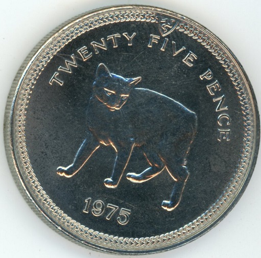 Isle of Man 25 Pence 1975 le chat « Manx » (vz-unz) Copper-Nickel KM# 31