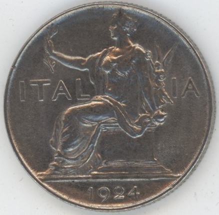 Italie 1 Lira 1924 Vittorio Emanuele III (vz) Nickel KM# 62
