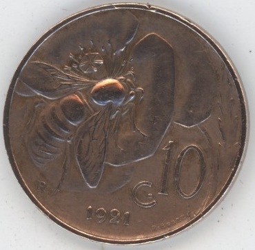 Italie 10 Centesimi 1921 R Vittorio Emanuele III (ss) Cuivre KM# 60