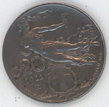 Italie 20 Centesimi 1911 R Victor-Emmanuel III (ss) Nickel KM# 44
