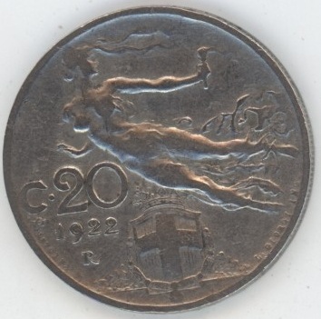 Italie 20 Centesimi 1922 R Victor-Emmanuel III (ss) Nickel KM# 44