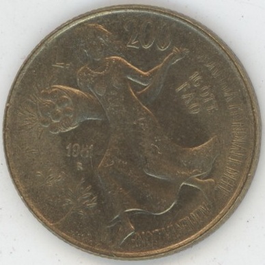 Italie 200 lires 1981 Journée mondiale de l’alimentation (vz-unz) Bronzital KM# 109