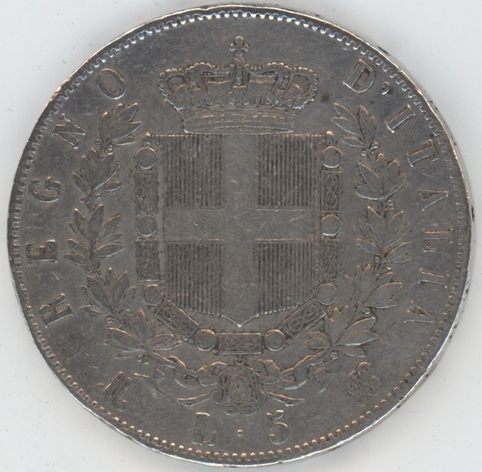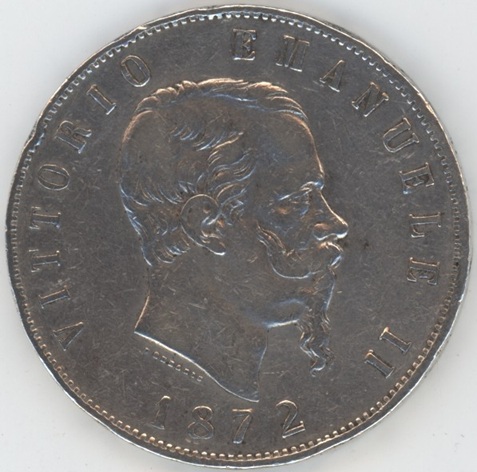 Italie 5 Lire 1872 M BN Vittorio Emanuele II (ss) en argent 0.900 (25gr) KM# 8.3