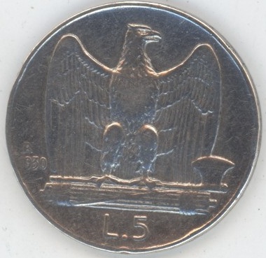 Italie 5 Lire 1930 R Vittorio Emanuele III (ss) en argent 0.835 (5gr) KM# 67.1