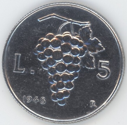 Italie 5 Lire 1948 R (ss) Aluminium KM# 89