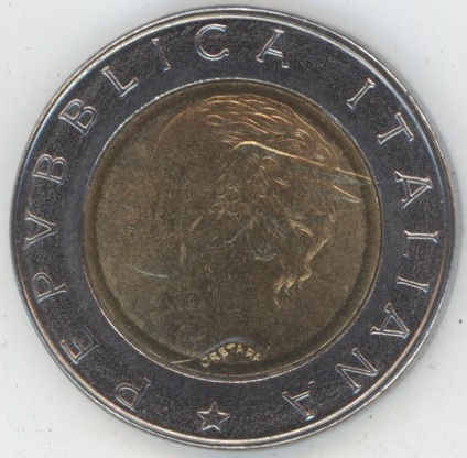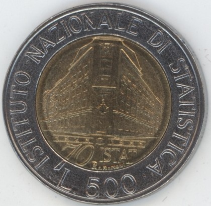 Italie 500 Lire 1996 Institut national des statistiques (vz-unz) Bimétallique KM# 181