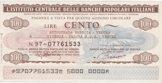 Italie Banche Popolari Italiane 100 Lire 1976 billet d’urgence Italie utilisé