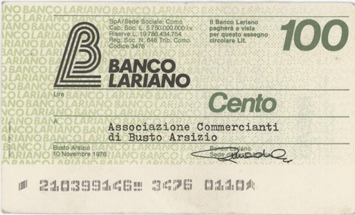 Italie Banco Lariano 100 Lire 1976 billet d’urgence Italie utilisé