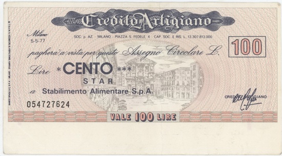 Italie Credito Artigiano Milano 100 Lire 1977 billet d’urgence Italie utilisé