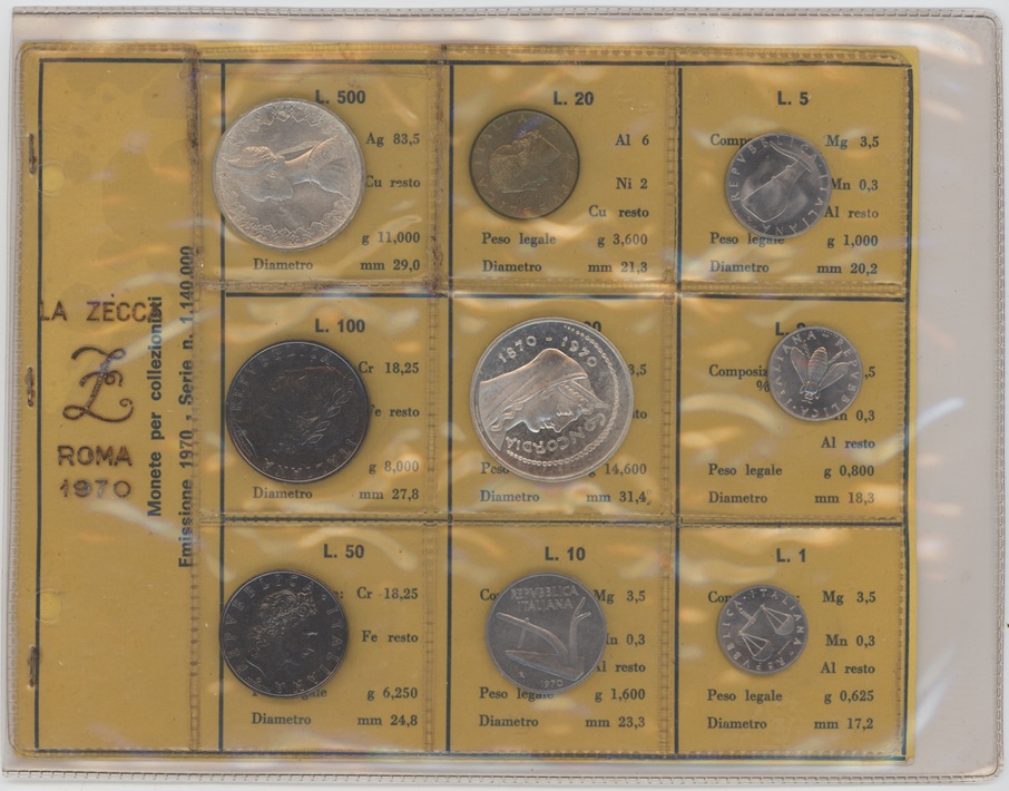 Italie série 1970 avec 500 Lire en argent 0.835 (11gr) et 1000 Lire en argent 0.835 (14.6gr) (unz)